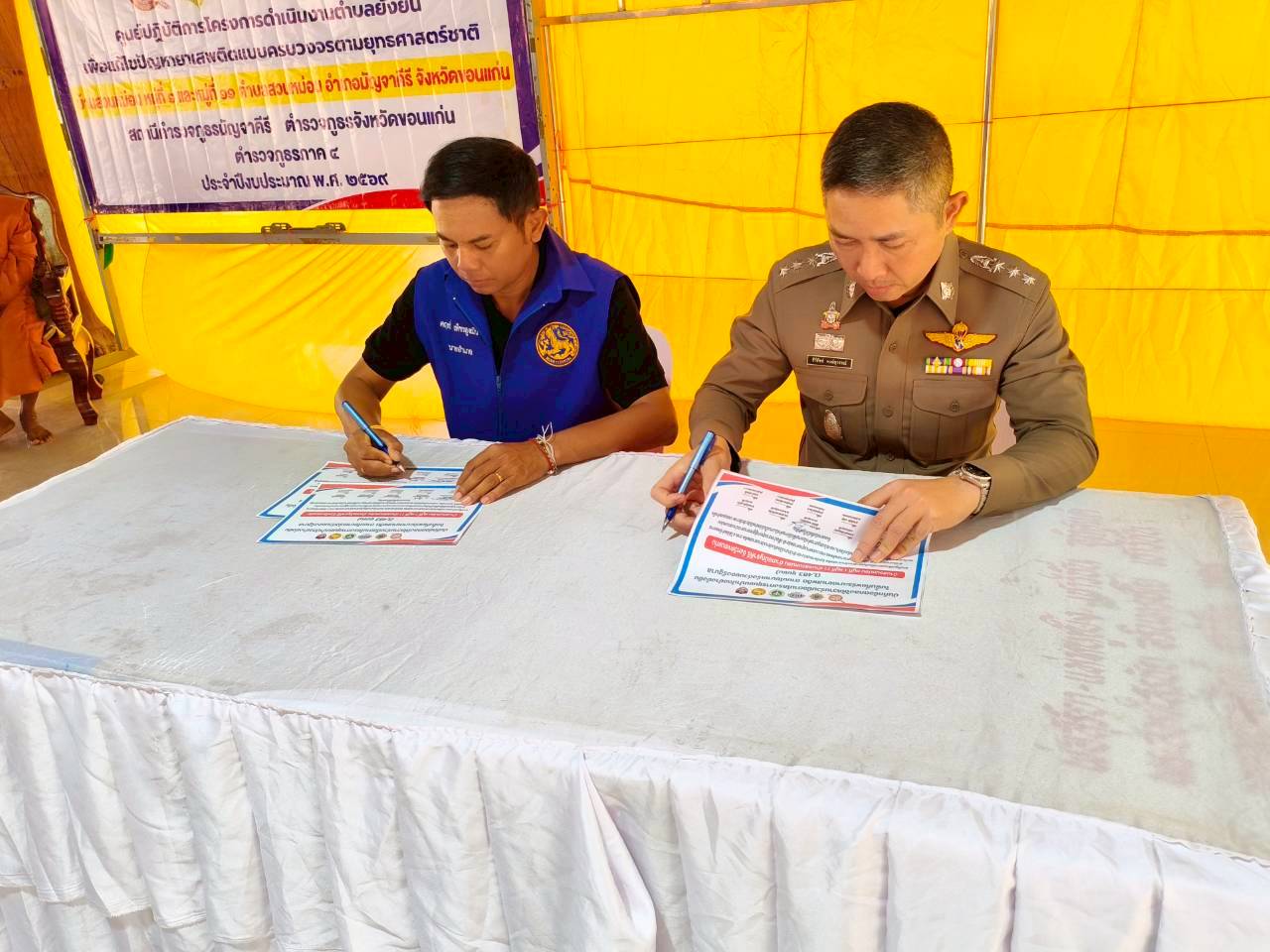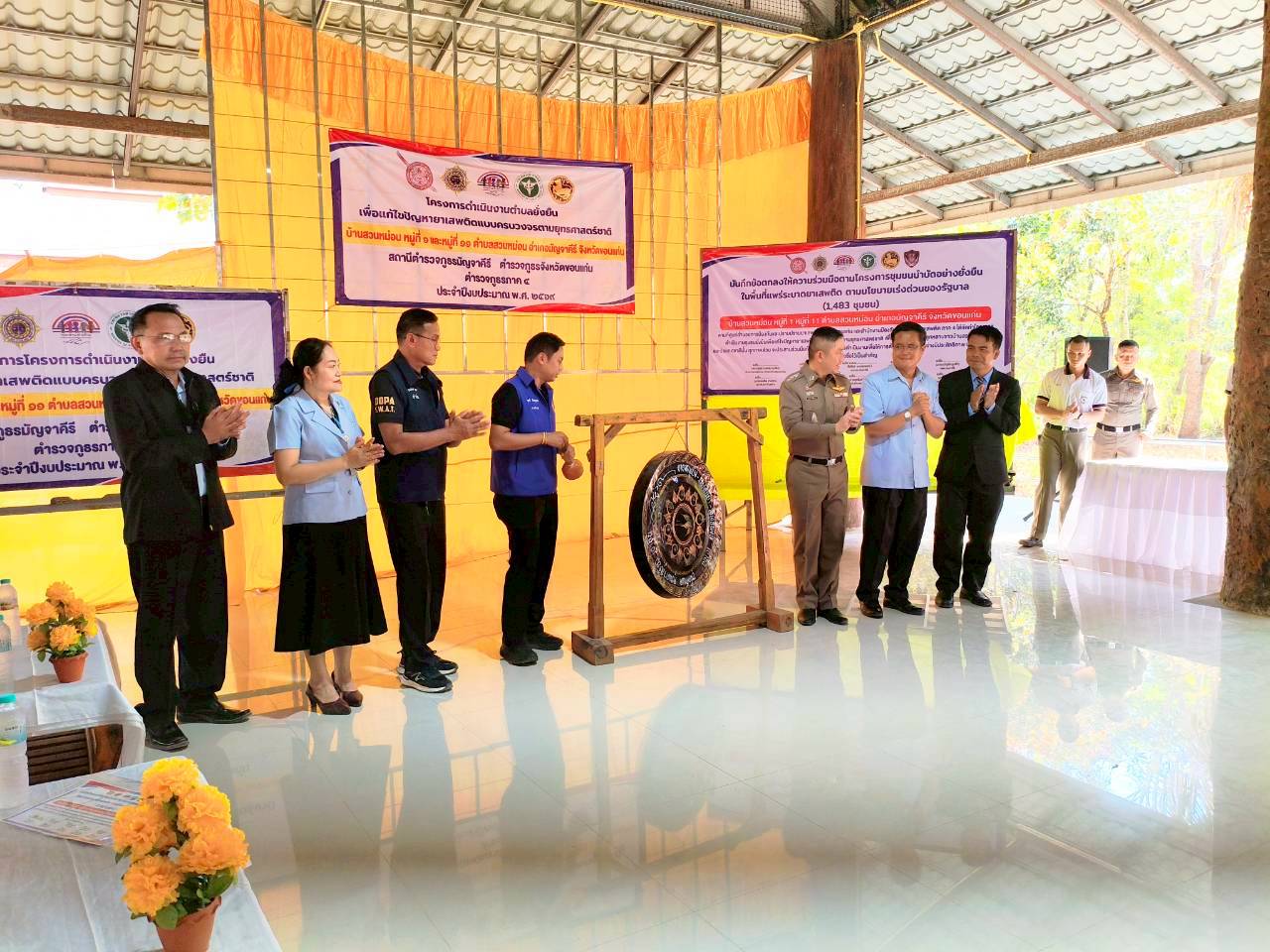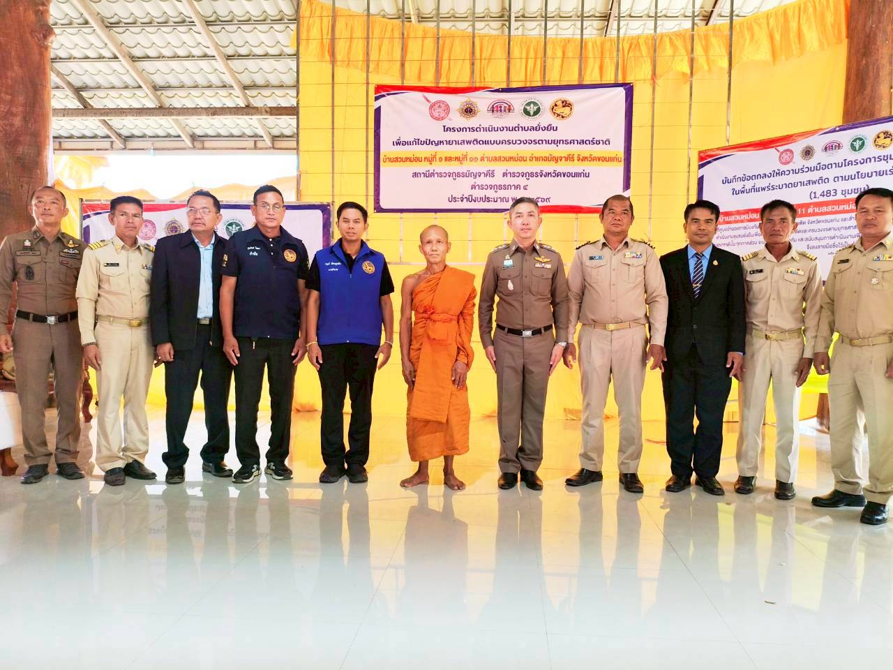 ทำพิธีเปิด โครงการชุมชนยั่งยืน เพื่อแก้ไขปัญหายาเสพติดแบบครบวงจรตามยุทธศาสตร์ชาติ 2569 ของบ้านสวนหม่อน หมู่ที่ 1และหมู่ที่11 ต.สวนหม่อน อ.มัญจาคีรี จ.ขอนแก่น และร่วมลงนาม บันทึกข้อตกลงให้ความร่วมมือโครงการชุมชนยั่งยืนฯ(MOU)